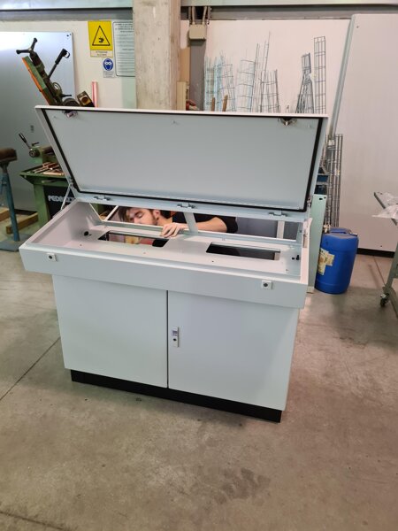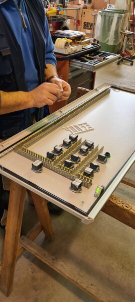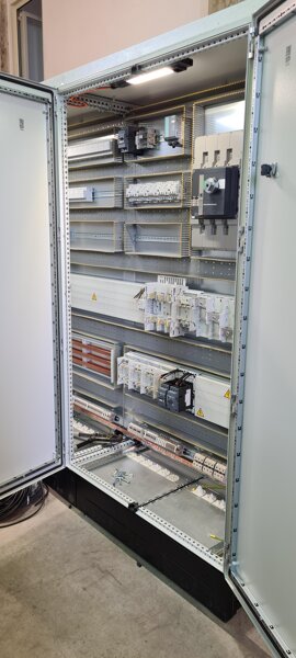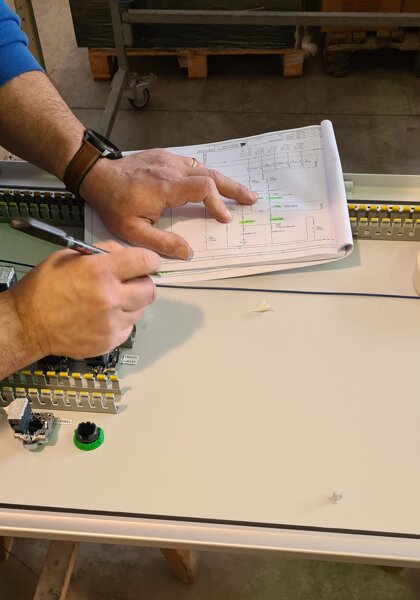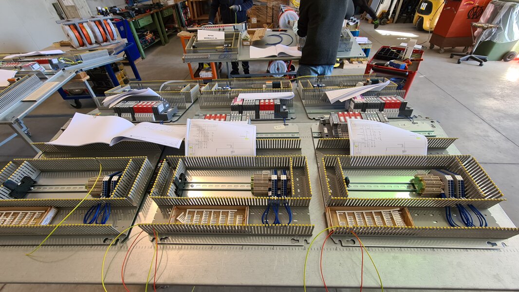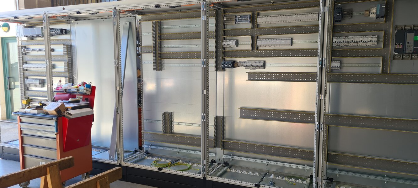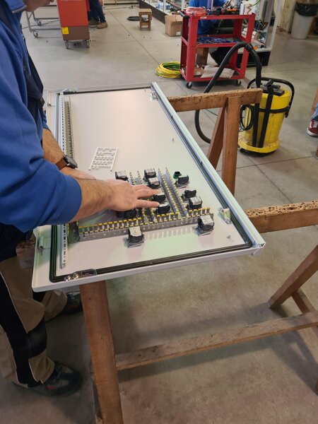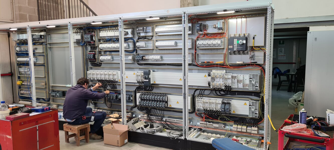 Parallelamente al lavoro elettronico, un'apposita sezione è riservata alle lavorazioni meccaniche dei quadri elettrici: le carpenterie vengono assemblate in batterie di armadi, destinate al comando operatore, e poi forate per l'inserimento di pulsanti, selettori e segnalazioni luminose.
