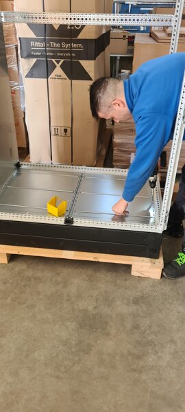 Dopo questa iniziale preparazione, si inizia ad agire sulle piastre interne degli armadi con lavori di foratura, filettatura e installazione delle canaline passacavi, l'ossatura delle vie cavi, dove saranno stese le corde destinate al cablaggio dei circuiti di potenza ed ausiliari.